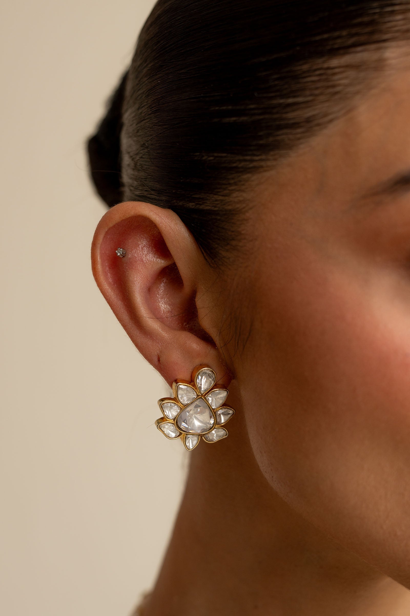This gold-plated teardrop stud features an intricate kundan design, crafted with precision.Handcrafted to perfection, it offers a timeless and elegant addition to any collection.