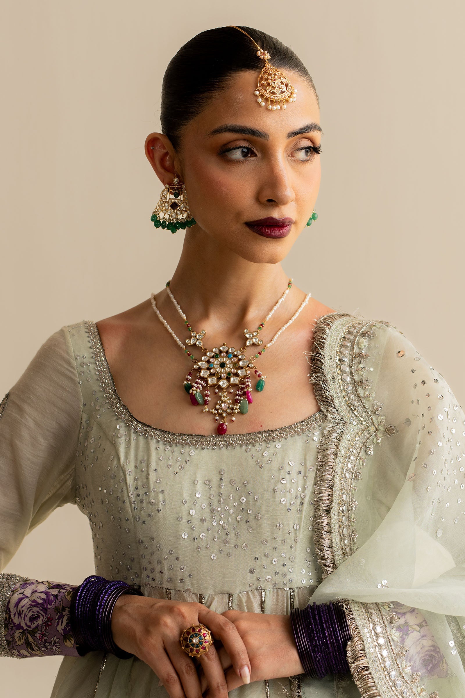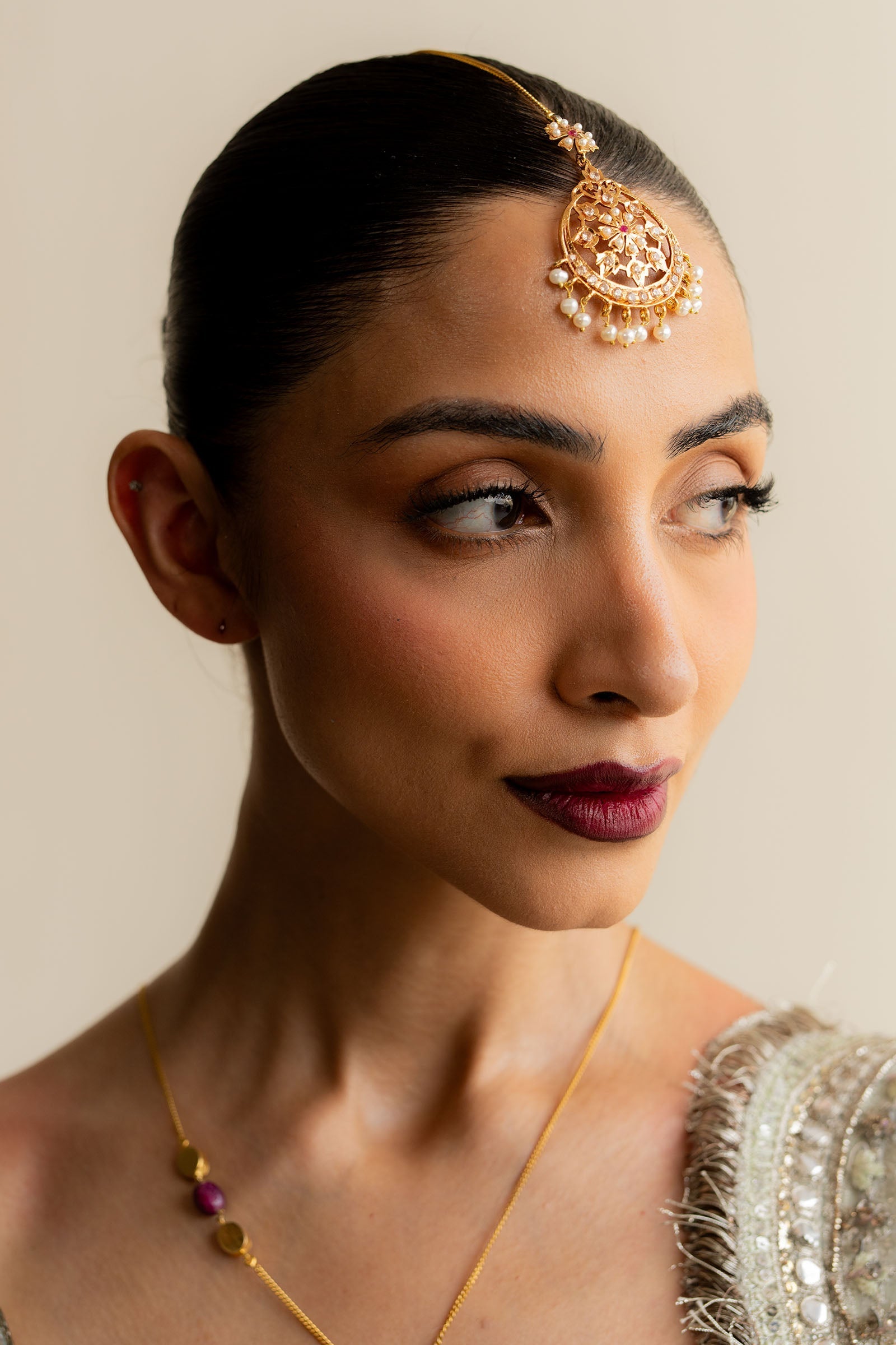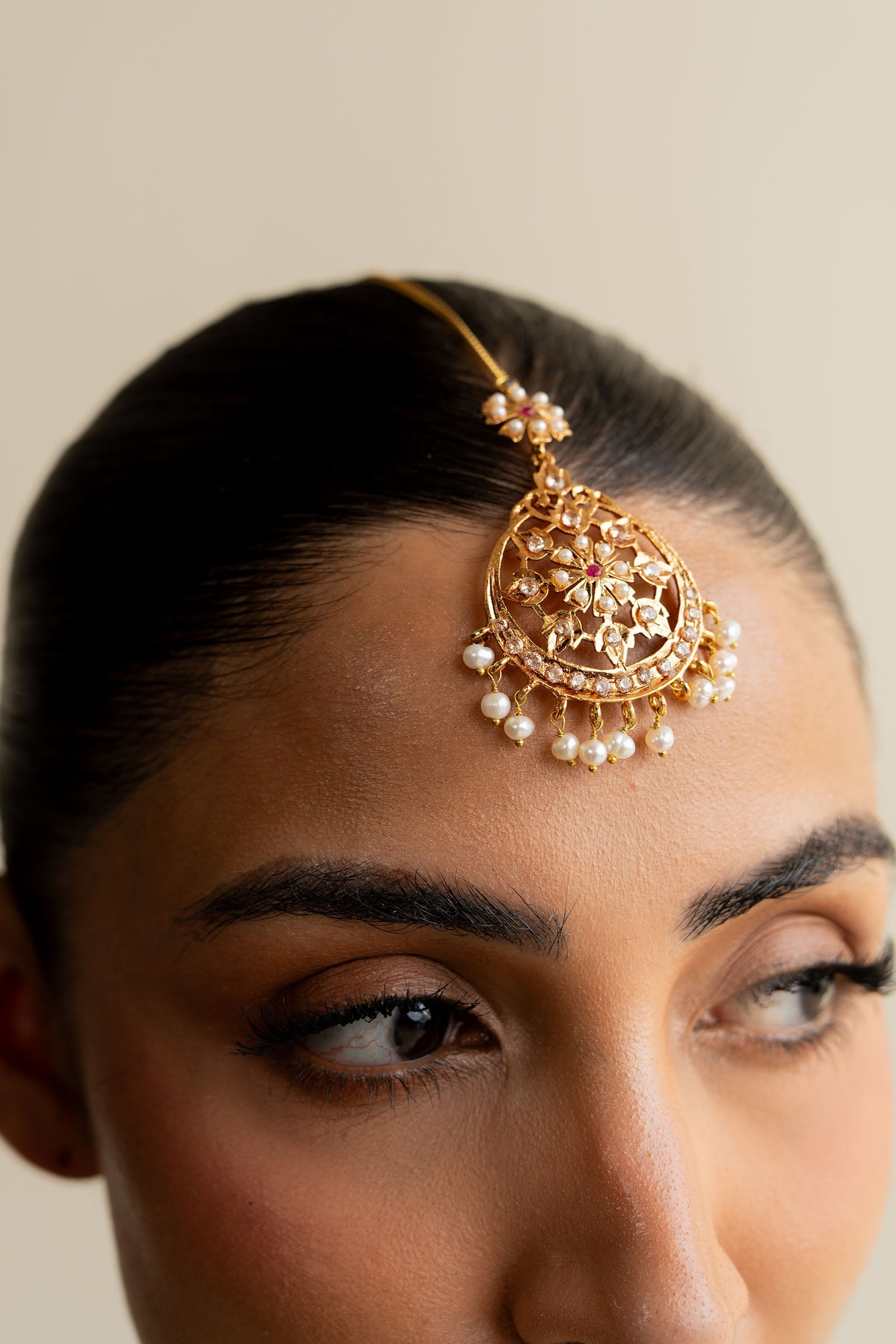 This handcrafted headpiece features real pearls and vibrant colored stones, meticulously arranged to create a striking and elegant design.A perfect fusion of timeless beauty and intricate craftsmanship, made to enhance your look with grace.