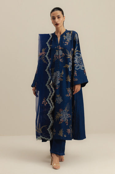 Completed with an embroidered organza dupatta, featuring delicate threadwork that adds lightness and grace. The airy fabric enhances the overall refinement of the ensemble.
